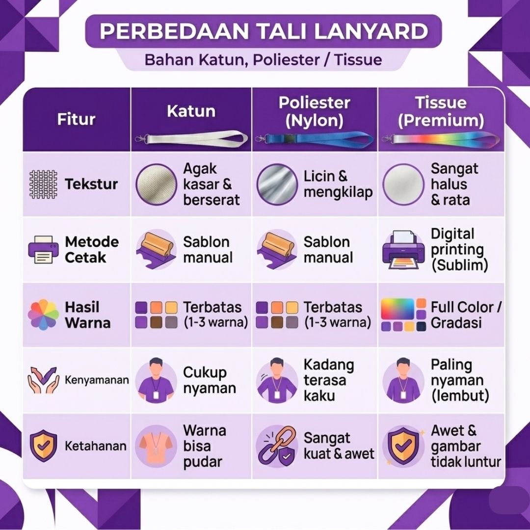 • Stopper: Hitam Solid. Memberikan kesan kokoh dan profesional pada tali lanyard.
